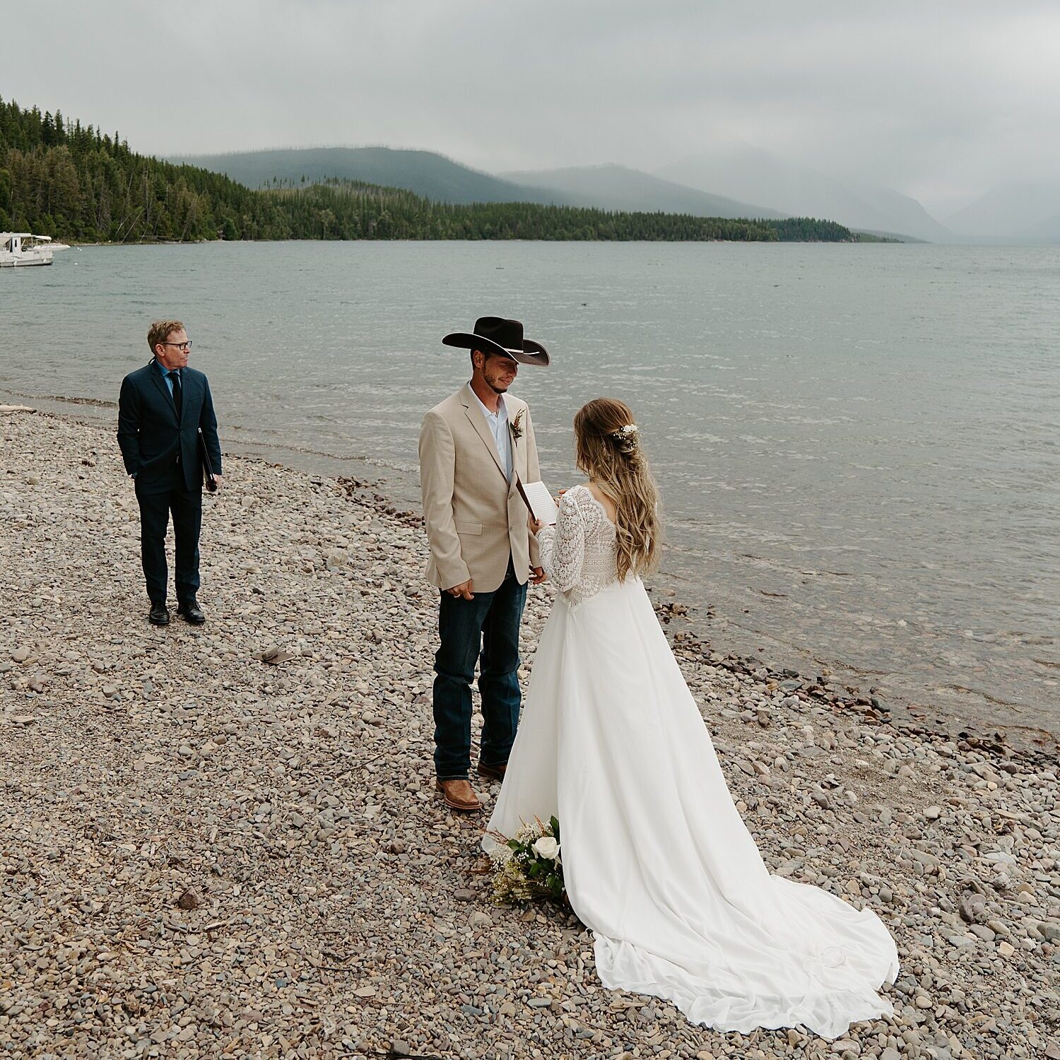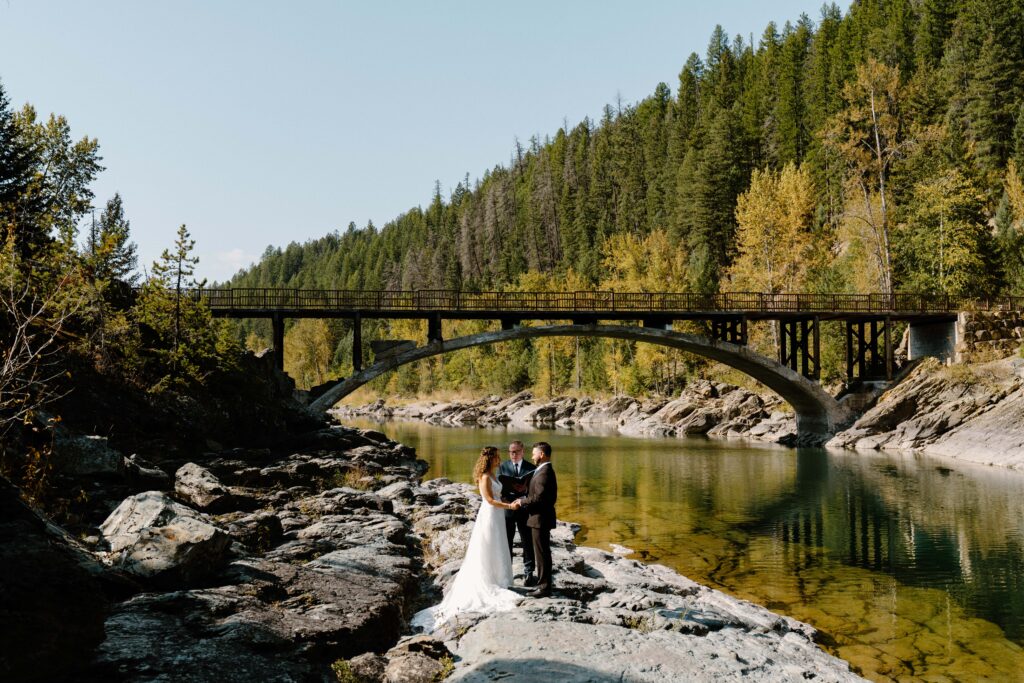 If you’re getting married at places like Bowman Lake, Lake McDonald, or Logan Pass for example, you probably want to stay on the west side! Some of the park’s stays include the Lake McDonald Lodge, Village Inn at Apgar, or Cedar Creek Lodge. Each of these lodges offers stunning views of the park’s mountains, lakes, and forests. You can also stay at one of the park’s campgrounds: Apgar, Fish Creek, Sprague Creek, and Avalanche Creek. But there are also a ton of great rentals in Columbia Falls, Whitefish, and Kalispell. Just be careful because you may have to drive 1+ hours to access certain parts of the park.