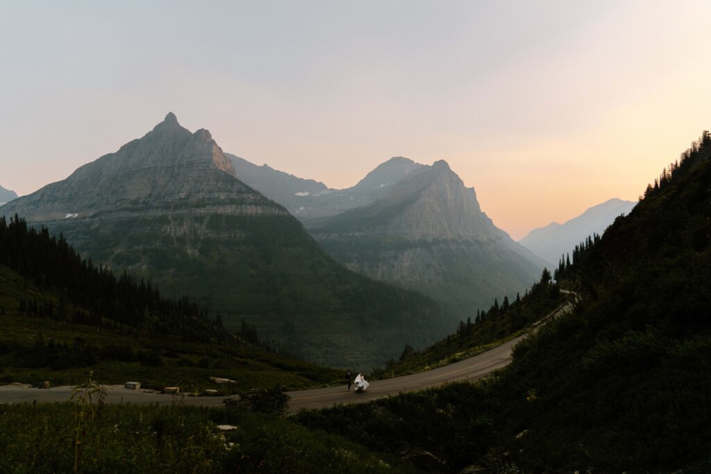Going-to-the-Sun Road Information: The Going-to-the-Sun Road (GTTSR) is the most iconic part of Glacier National Park! It’s a 50-mile road that takes around 2 hours (without stopping) to get from West Glacier to St Mary. The road typically opens at the end of June or beginning of July and closes sometime in mid to late October. However, depending on the weather, it may open late or close early, so it’s important to keep this in mind when planning your wedding here! Be prepared with backup locations.