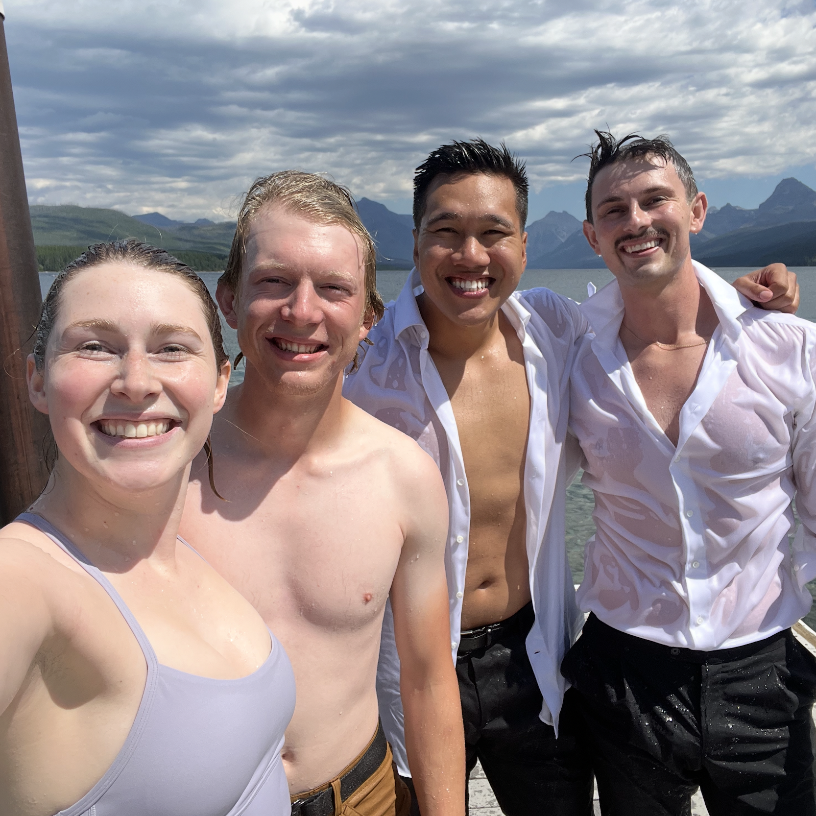 This elopement was such an epic day from their intimate sunrise ceremony to jumping into Lake McDonald in their wedding suits!