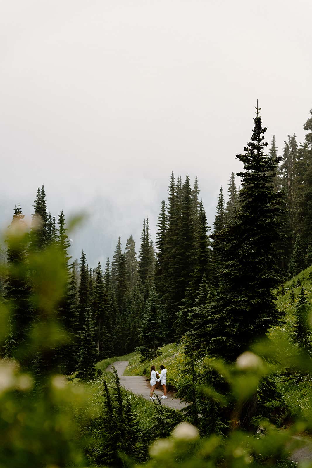 In order to have a wedding ceremony or vow exchange in Mount Rainier, you need to apply for a Special Use Permit. There are designated locations throughout the park where you’re able to have your ceremony, as well as specific days of the week and times of the day. You can check the map here for more info, but we also help guide all of our couples to choose the best spot based on their vision!